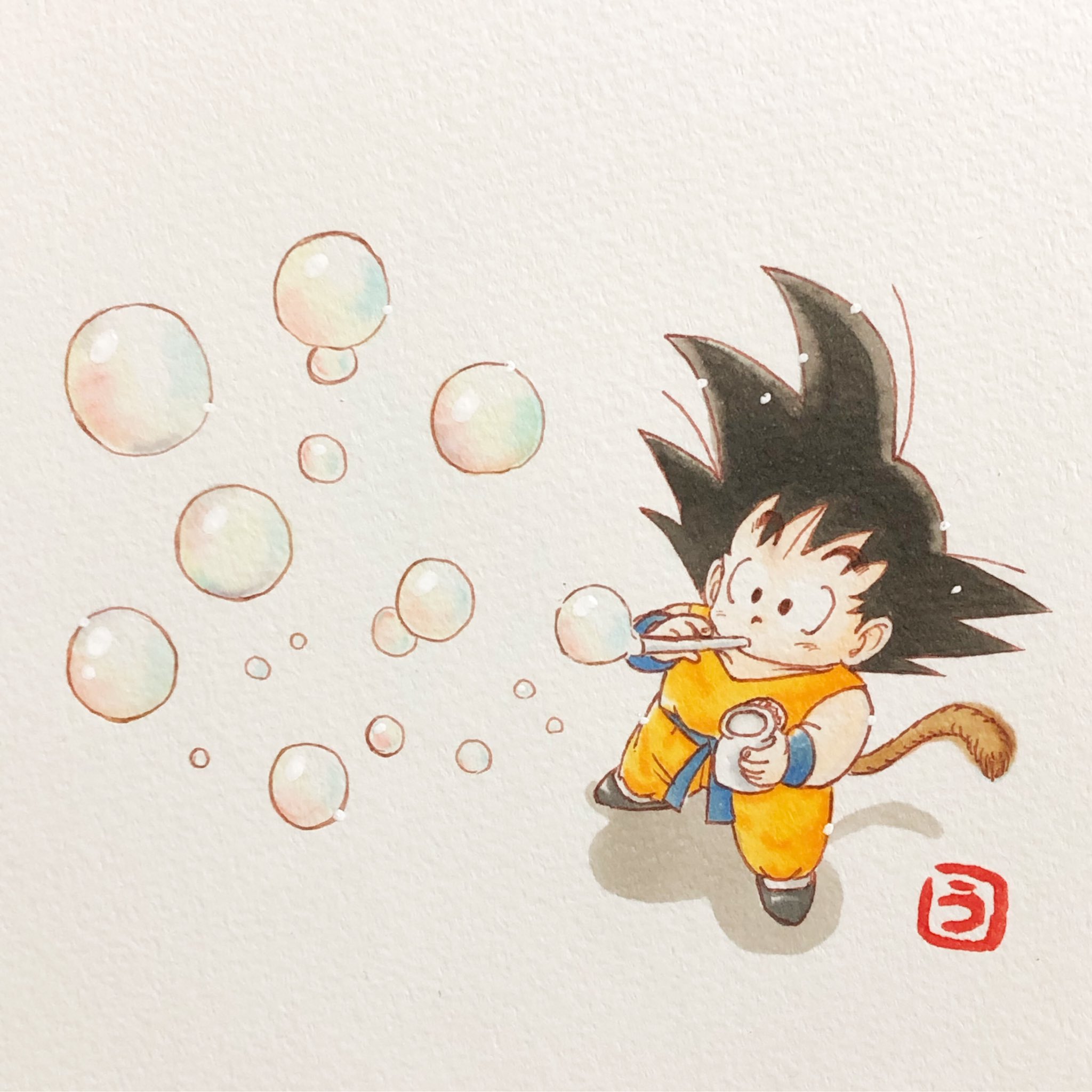 4wks ドラゴンボール 孫悟空 悟空 少年悟空 孫悟空イラスト ドラゴンボールイラスト 鳥山明 鳥山明リスペクト シャボン玉 シャボン玉イラスト コピック コピックイラスト お絵描き 模写 Copic Illustration Manga Dragonball